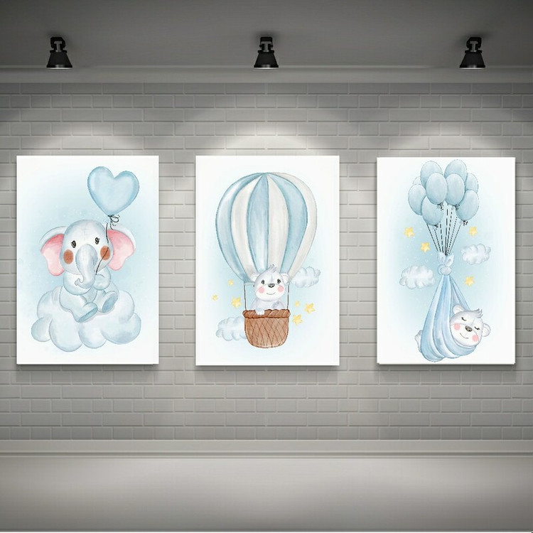 تابلو بوم طرح اتاق کودک مدل نقاشی آبرنگ مجموعه 3 عددی