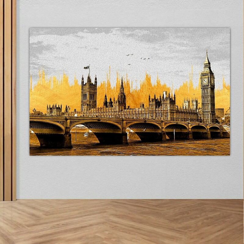 تابلو بوم طرح نمای زیبای پل برج لندن مدل طلایی کد f32