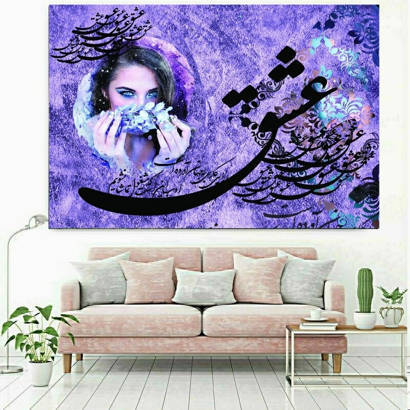 پوستر پارچه ای طرح شعر عاشقانه مدل عشق ما را پی کاری به جهان آورده است کد b32