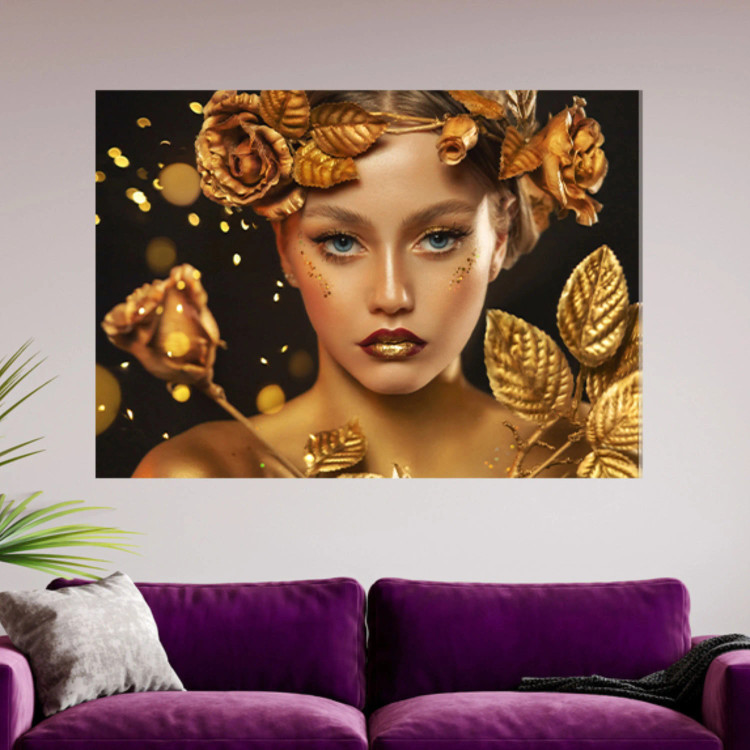 تابلو زن و گل طلایی ( 827-rosegold )