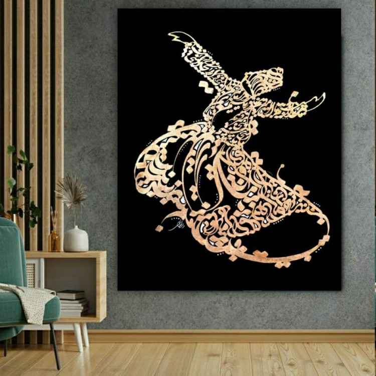 تابلو بوم طرح زیبای رقص سماع مدل تایپوگرافی حروف گلد کد 10070