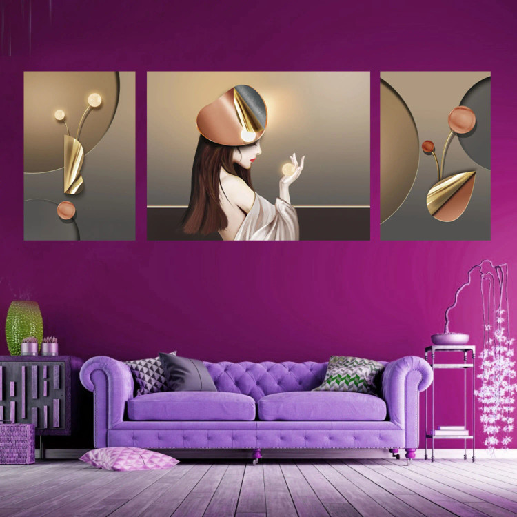 تابلو دکوراتیو سه تکه ( 1261-rosegold )