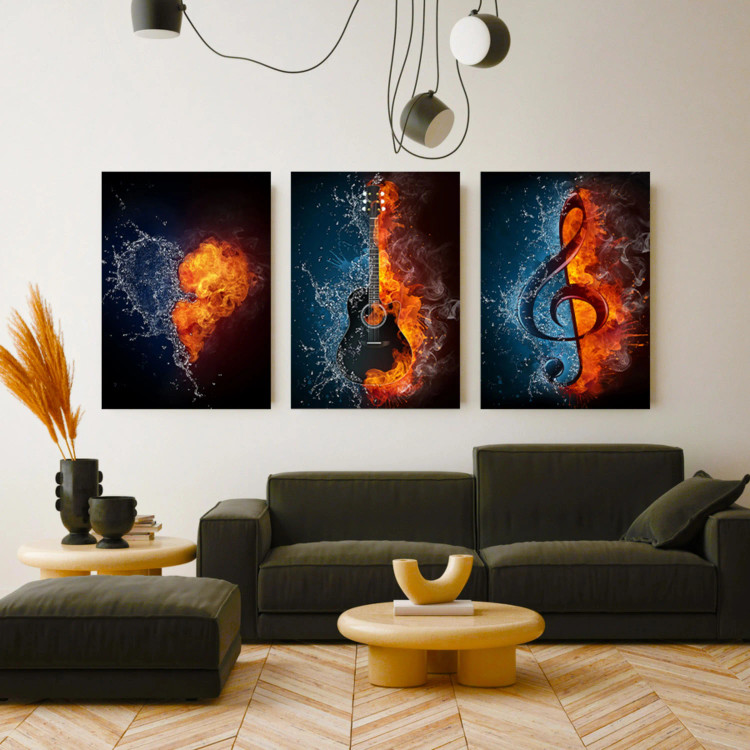 تابلو بوم طرح موسیقی و آب و آتش مجموعه 3 عددی ( 365-rosegold )