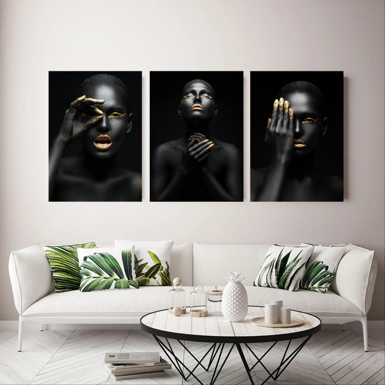 تابلو بوم طرح زن سیاه و طلایی مجموعه 3عددی